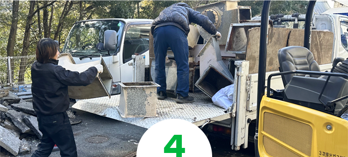 ご指定の日時に、スタッフがお伺いし作業を開始いたします。回収物の分類や梱包、積み込みや掃除まで、すべて「らくらく回収」が責任をもって行いますので、お客様は作業の終了をお待ちください。現場での追加のご依頼がある場合は、スタッフにお気軽にご相談ください。可能な限り対応させていただきます。